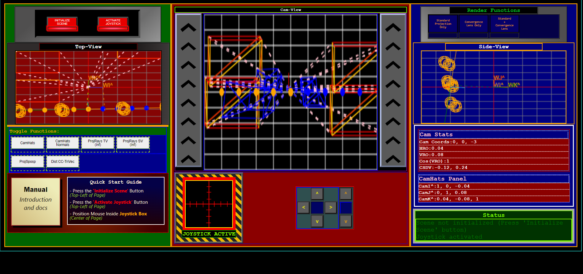 It features a camera, which when turned, drives the vectors in our world through a series of transformations that track it's X,Y coordinates relative to the camera screen. A process called projection.